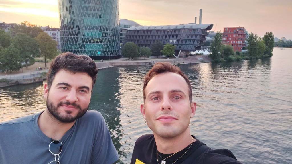 Semih sağ olsun çok güzel bir oteldeyiz. Manzaramız çok güzel, üst katında havuz var. Frankfurt keyifli bir şehirmiş. Hatice kesin çok sever burayı.